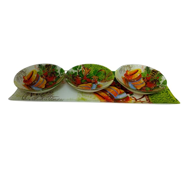 К-КТ СТЪКЛЕНО ПЛАТО 35х12см + 3бр. КУПИЧКИ Ф12см КОЛЕДНИ КАМБАНКИ