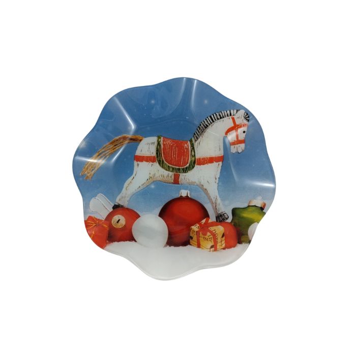 СТЪКЛЕНА КУПА ВЪЛНООБРАЗНА КРЪГ КОЛЕДНА С КОНЧЕ Ф21см /6/