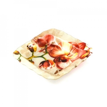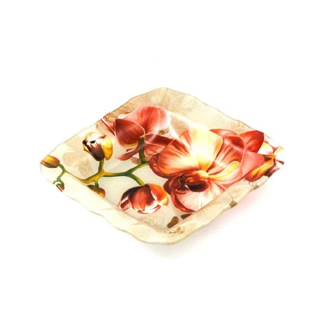 СТЪКЛЕНА КУПА КВАДР. ВЪЛНООБР. 19см ОРХИДЕИ I-S312108E/М121 /805511/