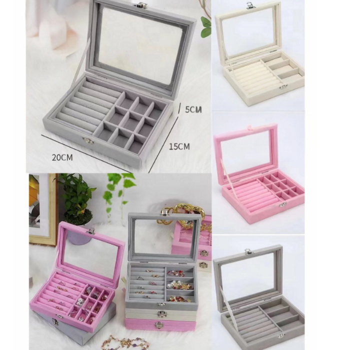 КУТИЯ ЗА БИЖУТА 3 ЧЕКМЕДДЖЕТА ПРОЗРАЧ.КАПАК ПЛЮШ 23*13,5*10см В73630