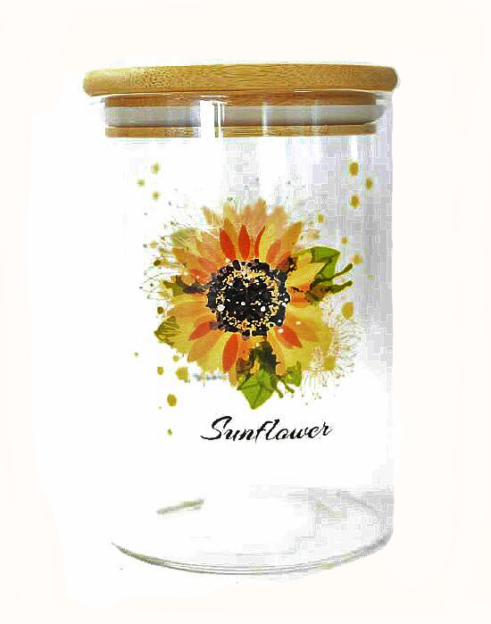 БУРКАН СТЪКЛО КРЪГ СЛЪНЧОГЛЕД С ДЪРВ. КАПАК Ф10см Н15см 800мл