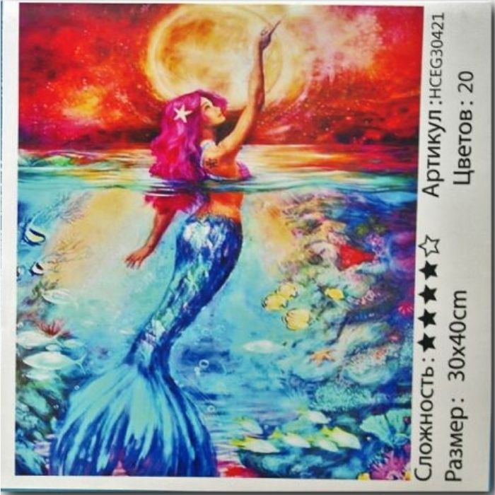 КАРТИНА ЗА РИСУВАНЕ ПО НОМЕРА НА ПЛАТНО "РУСАЛКА" кутия 30х40см.В67641
