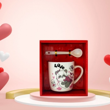 ЧАША ПОРЦ. ПАНДА LOVE С ЛЪЖИЧКА Ф7см Н7,5см КУТ. В74588