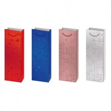 ТОРБИЧКИ ПОД. 10бр КАРТОН КОЛЕДНИ ЗА БУТИЛКА ЧЕРВЕН БЛЯСЪК МИКС 12х35х9см 40329-148