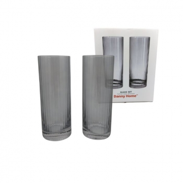 К-КТ 2бр. ЧАШИ СТЪКЛО ВИСОКИ СИВИ РЕЛЕФНИ 6,5*17,3*6,3см Danny Home