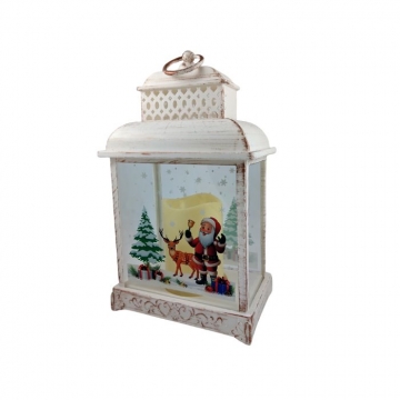 КОЛЕДНА УКРАСА ФЕНЕР СВЕТЕЩ БЯЛ КРЪГЪЛ ЕЛЕНИ LED ЛАМПИЧКИ 26*18см
