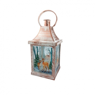 КОЛЕДНА УКРАСА ФЕНЕР СВЕТЕЩ С 3 СВЕЩИ И ВЕНЕЦ 34*13см 40402-08