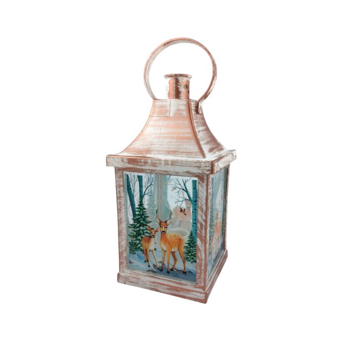 КОЛЕДНА УКРАСА ФЕНЕР СВЕТЕЩ БЯЛ ЕЛЕНИ LED ЛАМПИЧКИ 23*10,5см