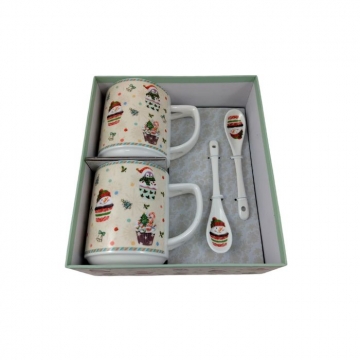 К-КТ 2бр. ЧАШИ КЕРАМ. КОЛЕДНИ С ЛЪЖИЧКИ КЕКСЧЕТА В ПОД.КУТ. Ф7,5см Н9см ЛУКС