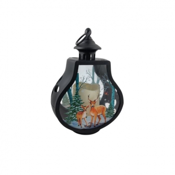 КОЛЕДНА УКРАСА ФЕНЕР ЧЕРЕН СВЕТЕЩ С ЕЛЕНИТУМБЕСТ 1 СВЕЩ 26*18см