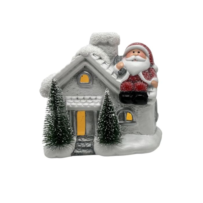 СВЕЩНИК КОЛЕДЕН КЕРАМ. КЪЩА СВЕТЕЩ 12*11,5см