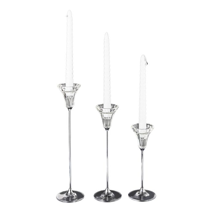 К-КТ 3бр.СВЕЩНИЦИ СРЕБРИСТИ СЪС СТЪКЛ.ЧАШКА 28/23/18см