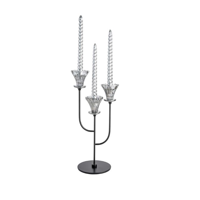 СВЕЩНИК 3-КА МЕТАЛЕН ЧЕРЕН СЪС СТЪКЛ.ЧАШКИ Н34см