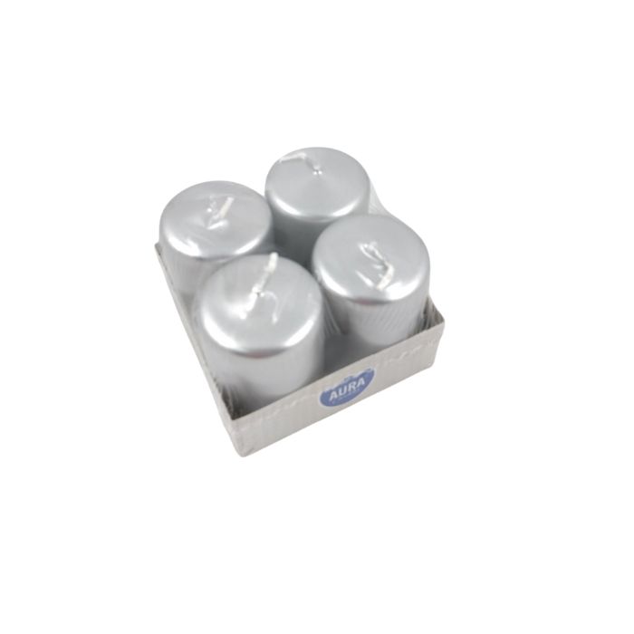 СВЕЩИ СРЕБЪРНИ цилиндър Bispol 4бр./кутия Н5,5смФ3,5см