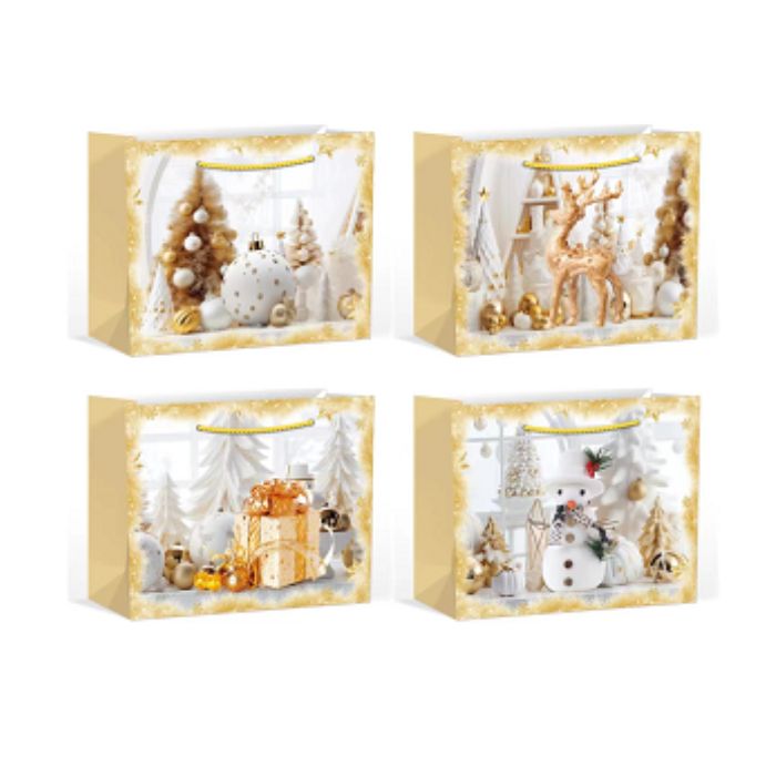 ТОРБИЧКИ ПОД. 10бр. КАРТОН КОЛЕДНИ ПОДАРЪЦИ БЛЕСТЯЩИ 32*26*10см