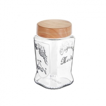 БУРКАН СТЪКЛО ORGANIC MADE ДЪРВ.КАПАК 850мл S-802-1 SARINA /290624/ /12/