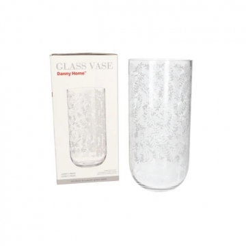 ВАЗА СТЪКЛО НА БЯЛ ФЛОРАЛ.МОТИВ Н25см Ф12см Danny Home