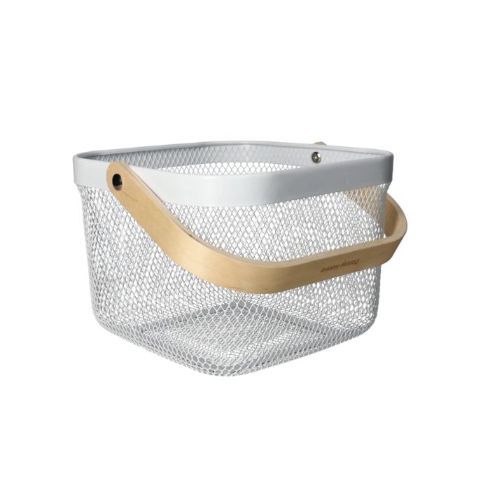 КОШНИЦА МЕТАЛНА БЯЛА С ДЪРВ,ДРЪЖКА 24*24*17,5см Danny Home