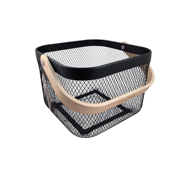 КОШНИЦА МЕТАЛНА ЧЕРНА С ДЪРВ,ДРЪЖКА 24*24*17,5см Danny Home
