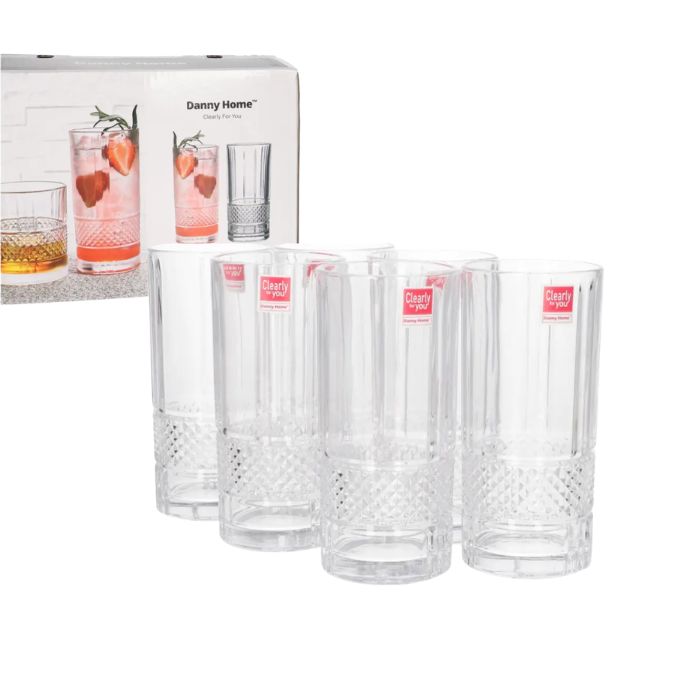 К-КТ 6бр. ЧАШИ СТЪКЛО ЗА ВОДА РЕЛЕФ 330мл Danny Home