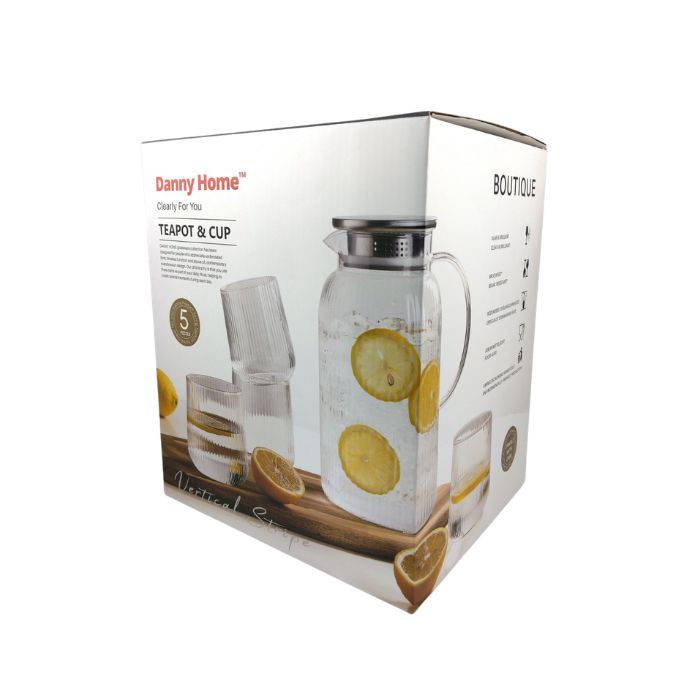 К-КТ КАНА 1,9л + 4 ЧАШИ СТЪКЛО 320мл РЕЛЕФ Danny Home