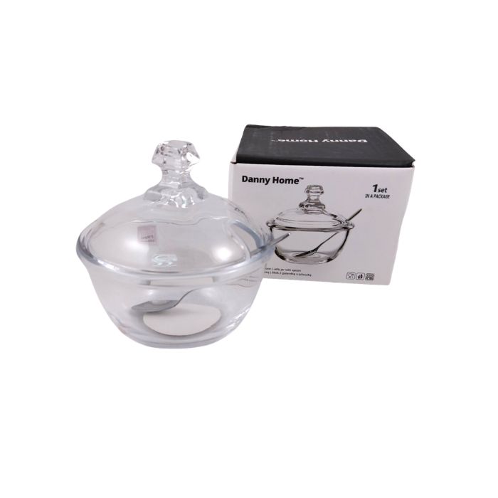 ЗАХАРНИЦА СТЪКЛО С КАПАК И ЛЪЖИЧКА в кутия ф11,5см.Danny Home