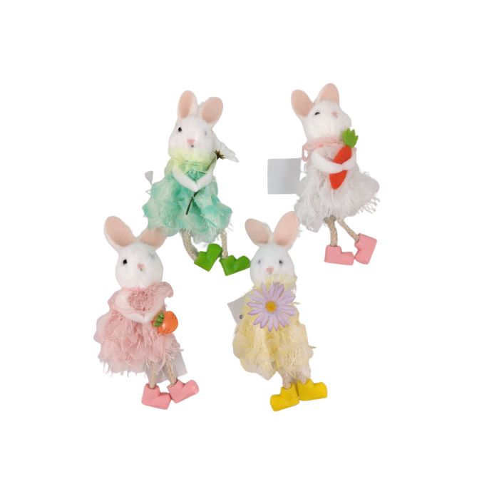 ДЕКОРАЦИЯ ВЕЛИКДЕН - ЗАЙЧЕ ПЛЮШЕНО С РОКЛЯ ВИС.КРАЧЕТА 15см В73685 /12/