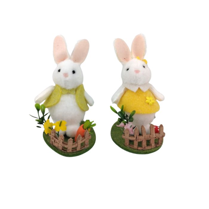ДЕКОРАЦИЯ ВЕЛИКДЕН - ЗАЙЧЕ ПЛЮШЕНО С РОКЛЯ ВИС.КРАЧЕТА 15см В73685 /12/