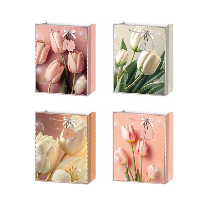 ТОРБИЧКИ ПОД. 10бр БЕЖОВИ ЦВЕТЯ ДБ.КАРТОН 24х18х8,5см 50328-67