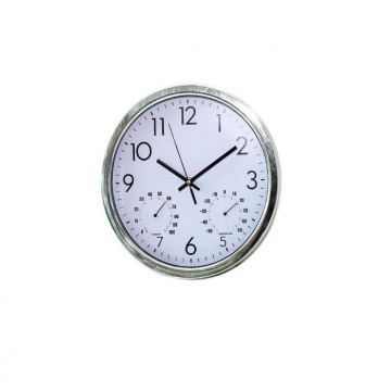 СТЕНЕН ЧАСОВНИК Ф28см С ХИДРОМЕТЪР И ТЕРМОМЕТЪР СРЕБРИСТ