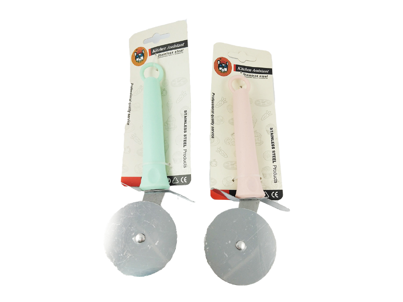 НОЖ ЗА ПИЦА 20см /ролка Ф6,5см/ ЦВЕТНА ПВЦ ДРЪЖКА