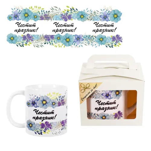 ЧАША КЕРАМ. СИНИ ЦВЕТЯ "Честит празник!" Н7см Ф7см В КУТИЯ С ПОЖЕЛАНИЕ