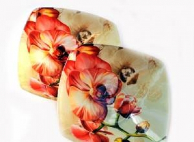 КУПА КВАДРАТ 20см ЦВЕТНО СТЪКЛО ОРХИДЕЯ